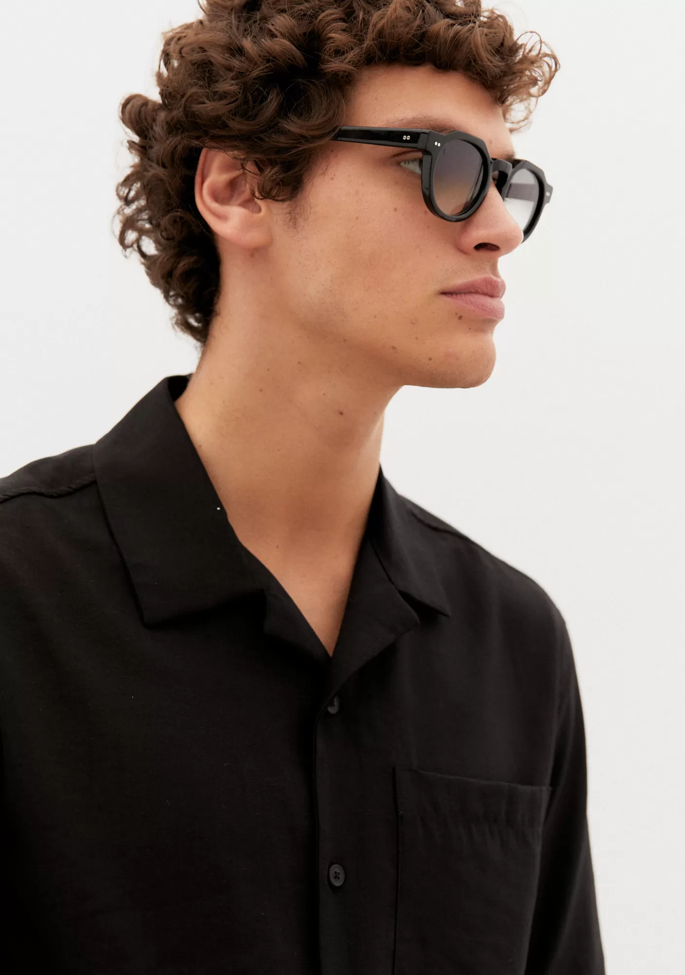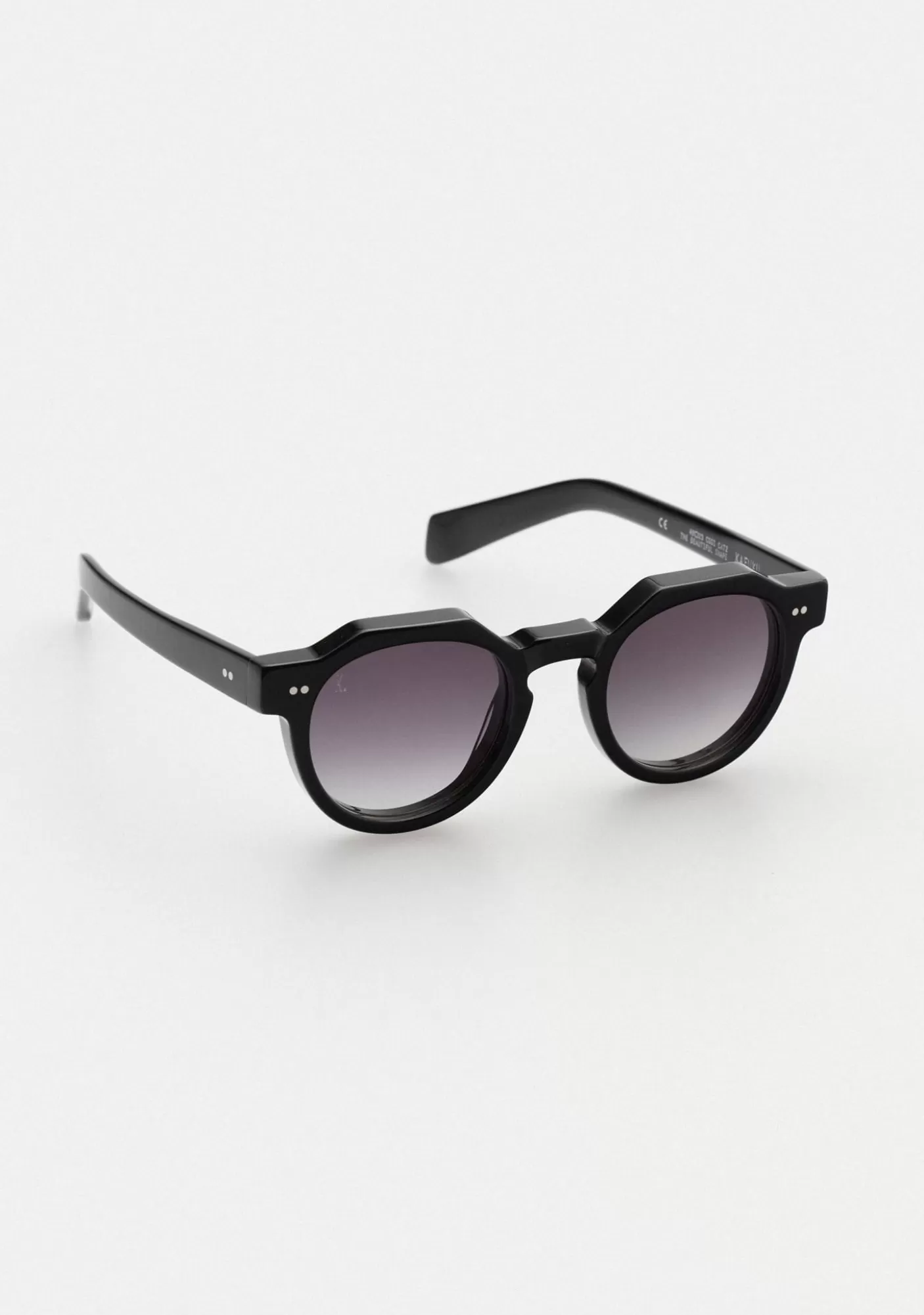 Gafa De Sol De Acetato Grueso Monocolor Negro. Forma Panthos Con Puente En Llave. Bisagras Con Remache Plata En Codo Y Varillas. Varillas De Acetato. Lente Mineral Negra Base 2 Con 100% Proteccion Uv Y Tratamiento Anti-Reflejante. Lente Categoria 2. Plaquetas De Acetato Incorporadas. Hecha A Mano.