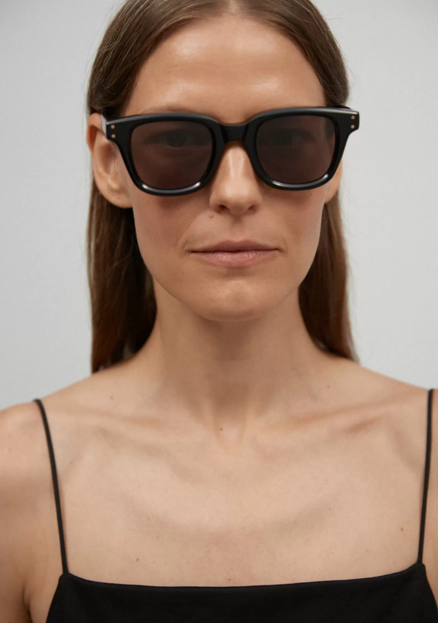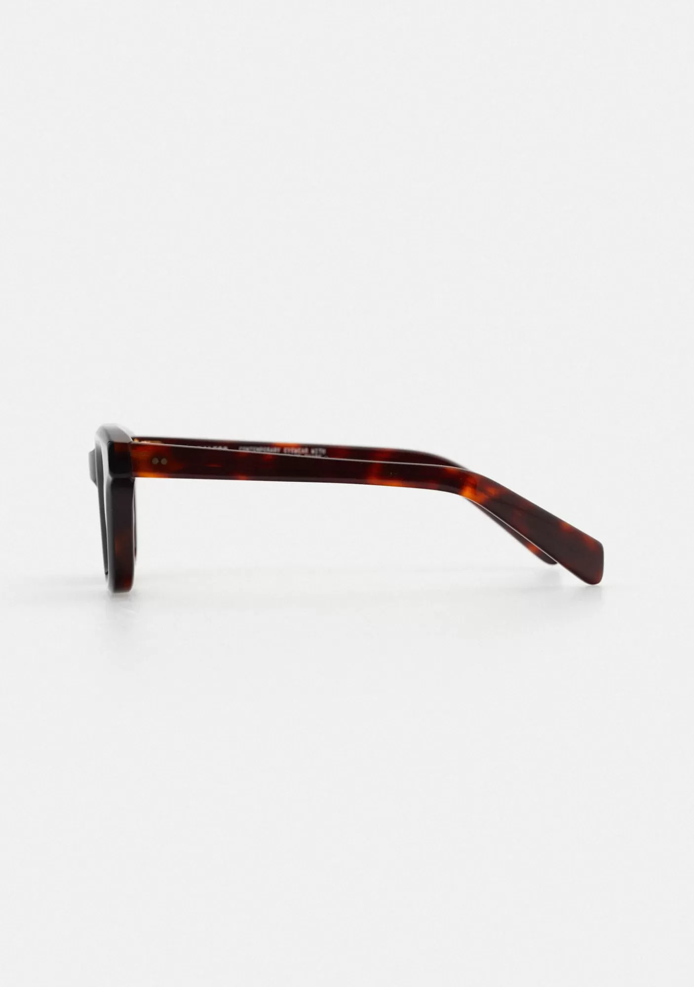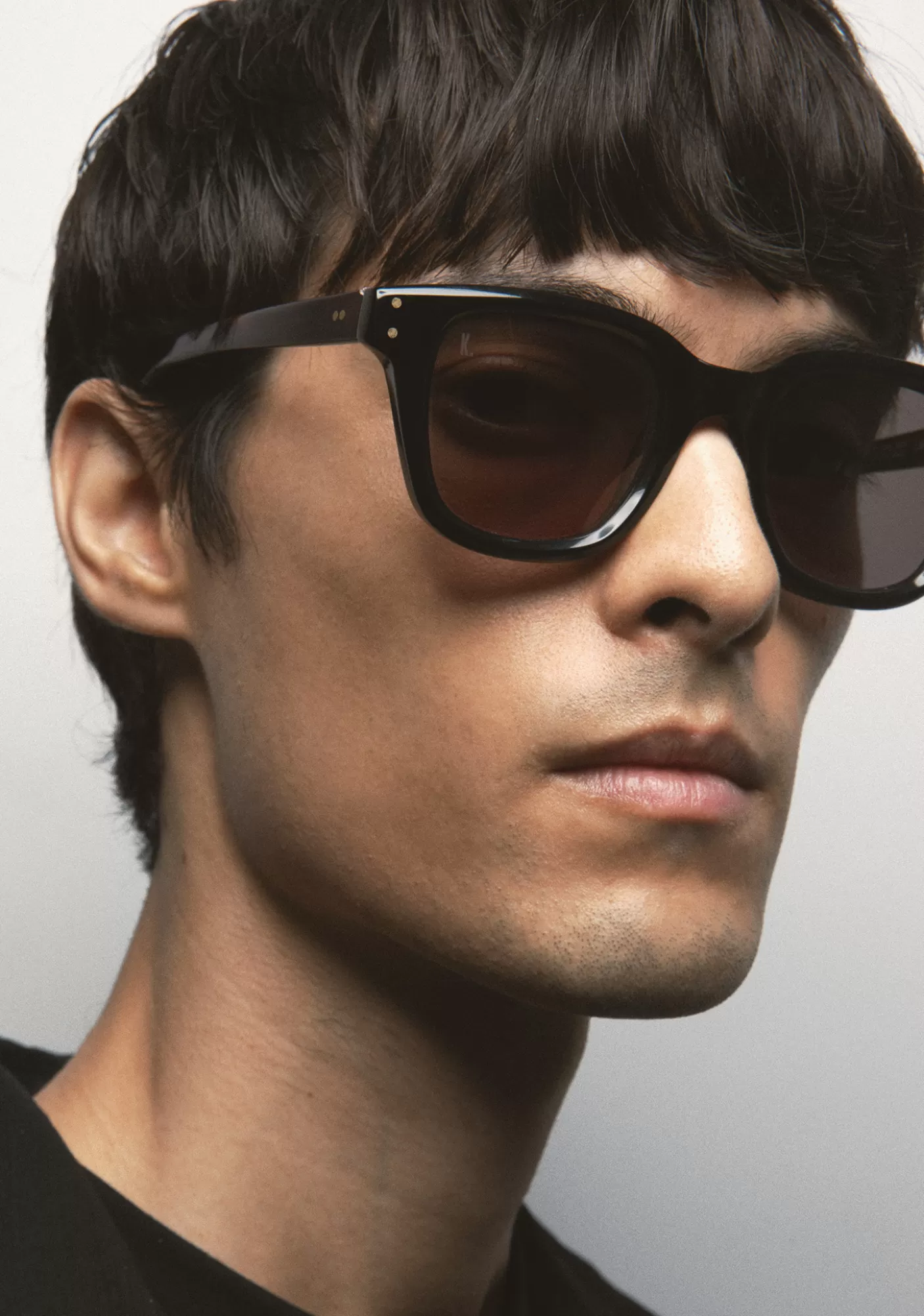 Gafa De Sol De Acetato Negro En La Parte Frontal Y Havana En La Parte Trasera. Forma Cuadrada. Varillas De Acetato Havana Marron. Lente Base 2 Gris Oscuro Con 100% Proteccion Uv. Lente Categoria 3. Plaquetas De Acetato Incorporadas. Hecha A Mano.