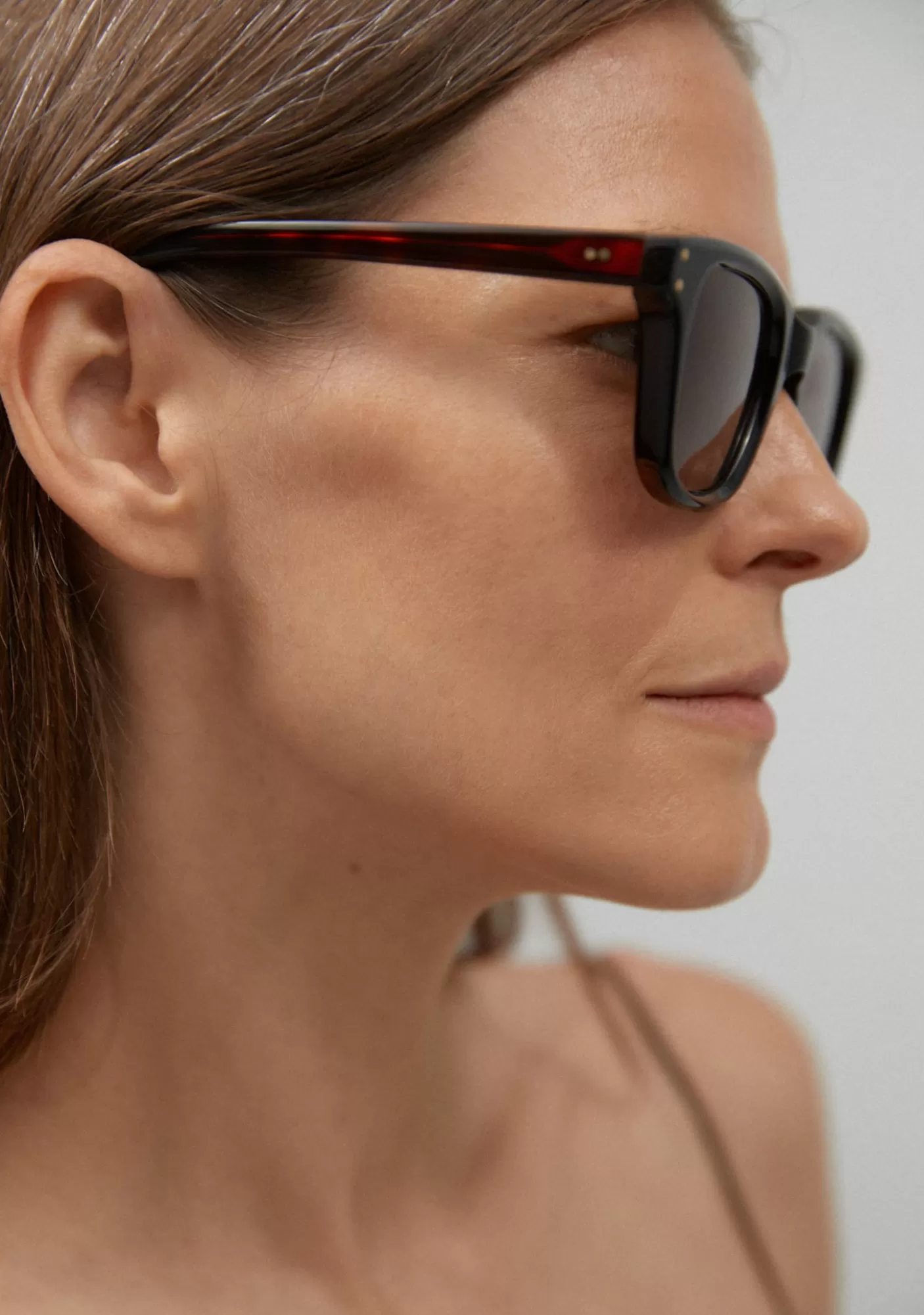 Gafa De Sol De Acetato Negro En La Parte Frontal Y Havana En La Parte Trasera. Forma Cuadrada. Varillas De Acetato Havan…