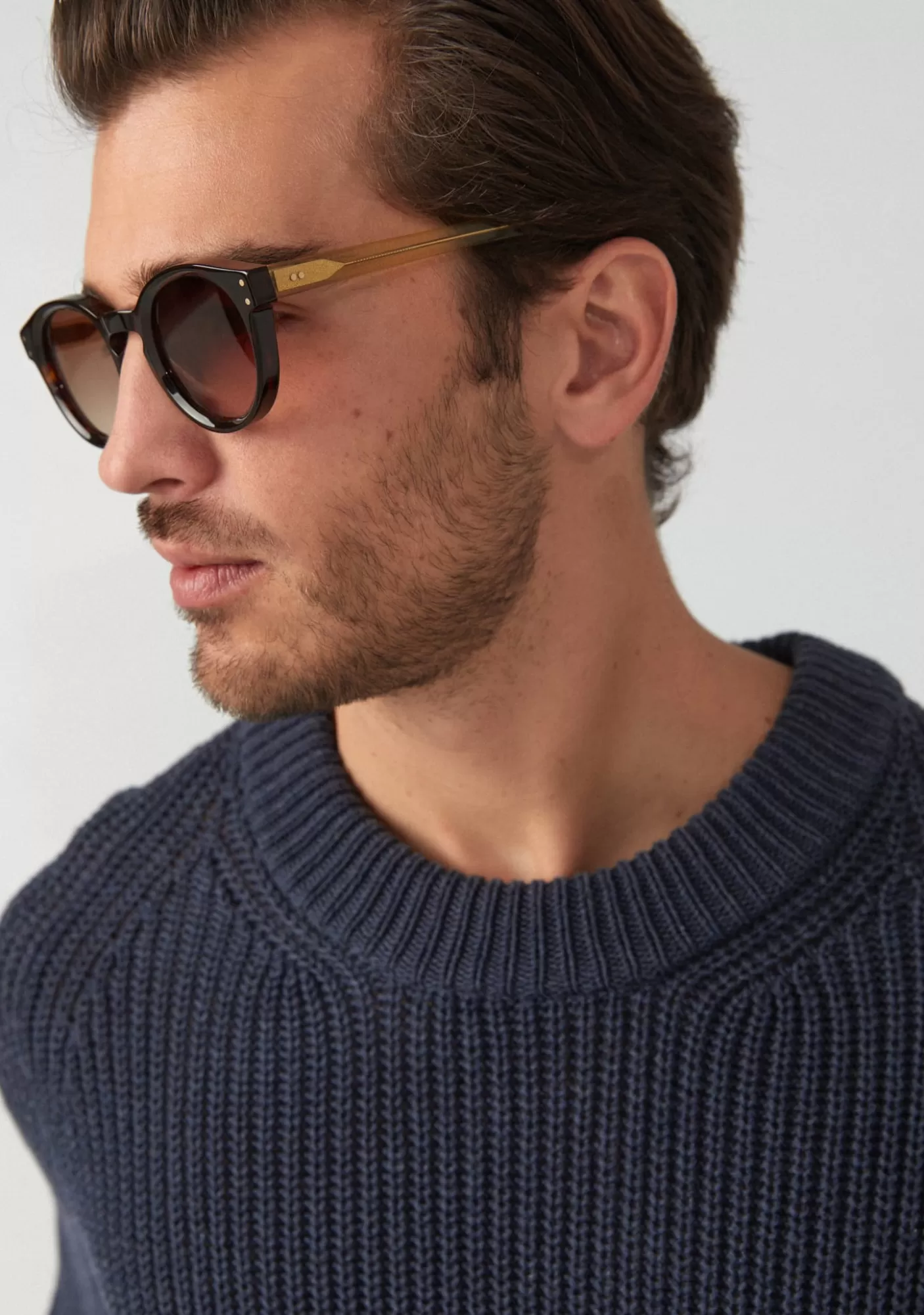 Gafa De Sol De Acetato Grueso Havana Marron Oscuro.Forma Panthos Con Puente En Llave. Visagre Con Remache En Codo Y Varillas. Fresado Alrededor De La Lente. Varillas De Acetato. Lente Degradado Marron Base 2 Con 100% Proteccion Uv. Tratamiento Anti-Reflejante Plaquetas De Acetato Incorporadas. Hecha A Mano.