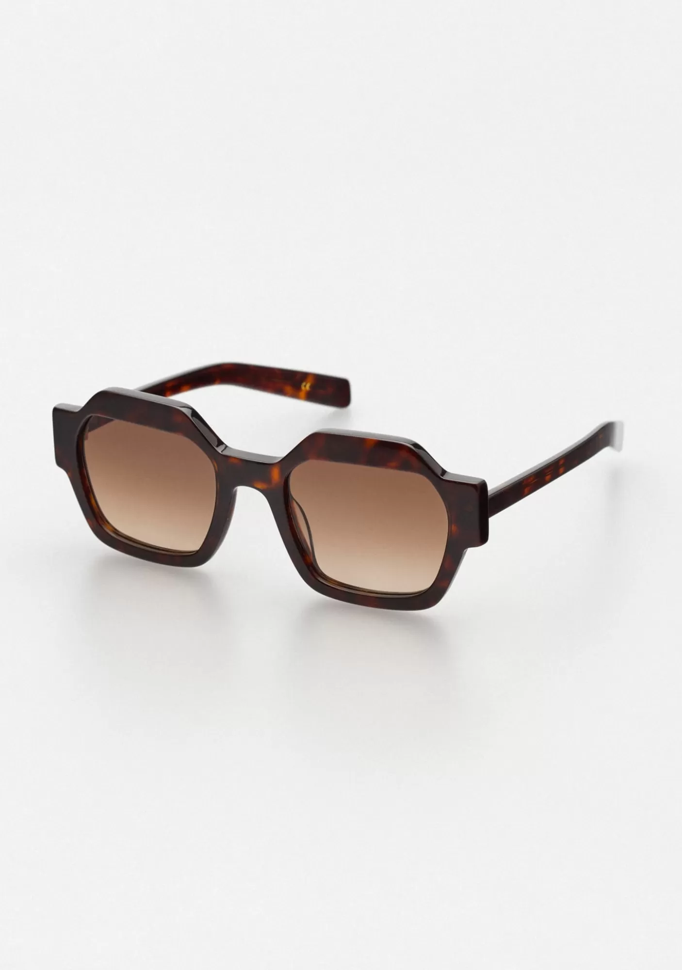 Gafa De Sol De Acetato Monocolor Havana Marron Oscuro. Forma Panthos Con Ceja Plana. Codo De Titanio Con Estrias. Varillas Y Puente De Titanio Flexible. Varillas Con Terminal De Acetato. Maxima Flexibilidad, Ligereza, Durabilidad Y Confortabilidad. Lente Marron Degradada Base 2 Con 100% Proteccion Uv Y Tratamiento Anti Reflejante. Plaquetas Ajustables De Titanio. Hecha A Mano.