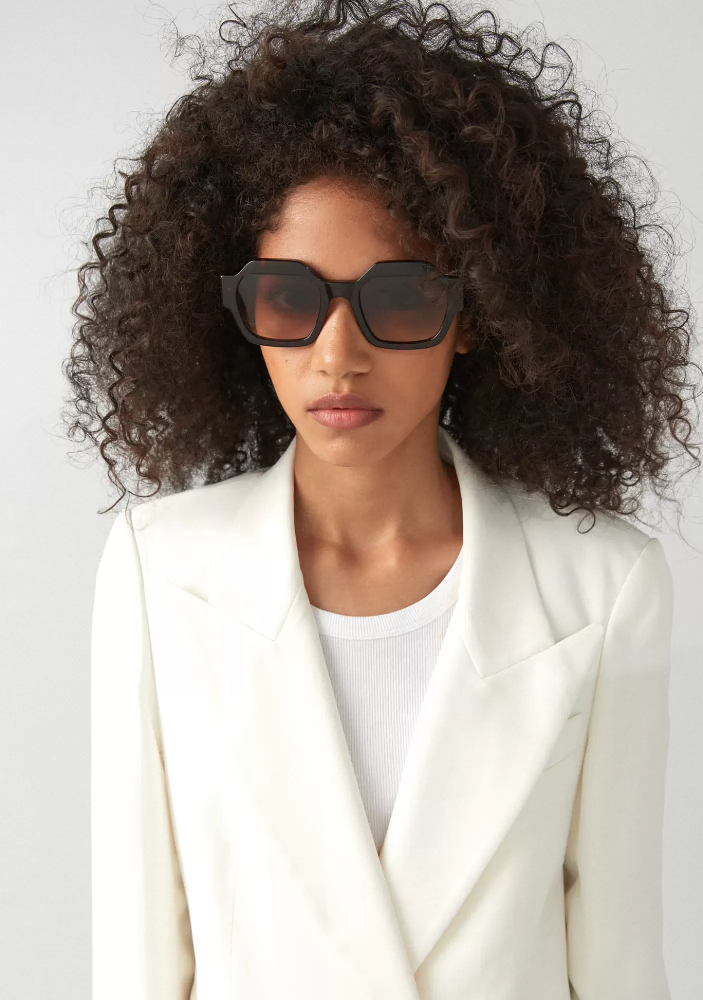 Gafa De Sol De Acetato Monocolor Havana Marron Oscuro. Forma Panthos Con Ceja Plana. Codo De Titanio Con Estrias. Varill…
