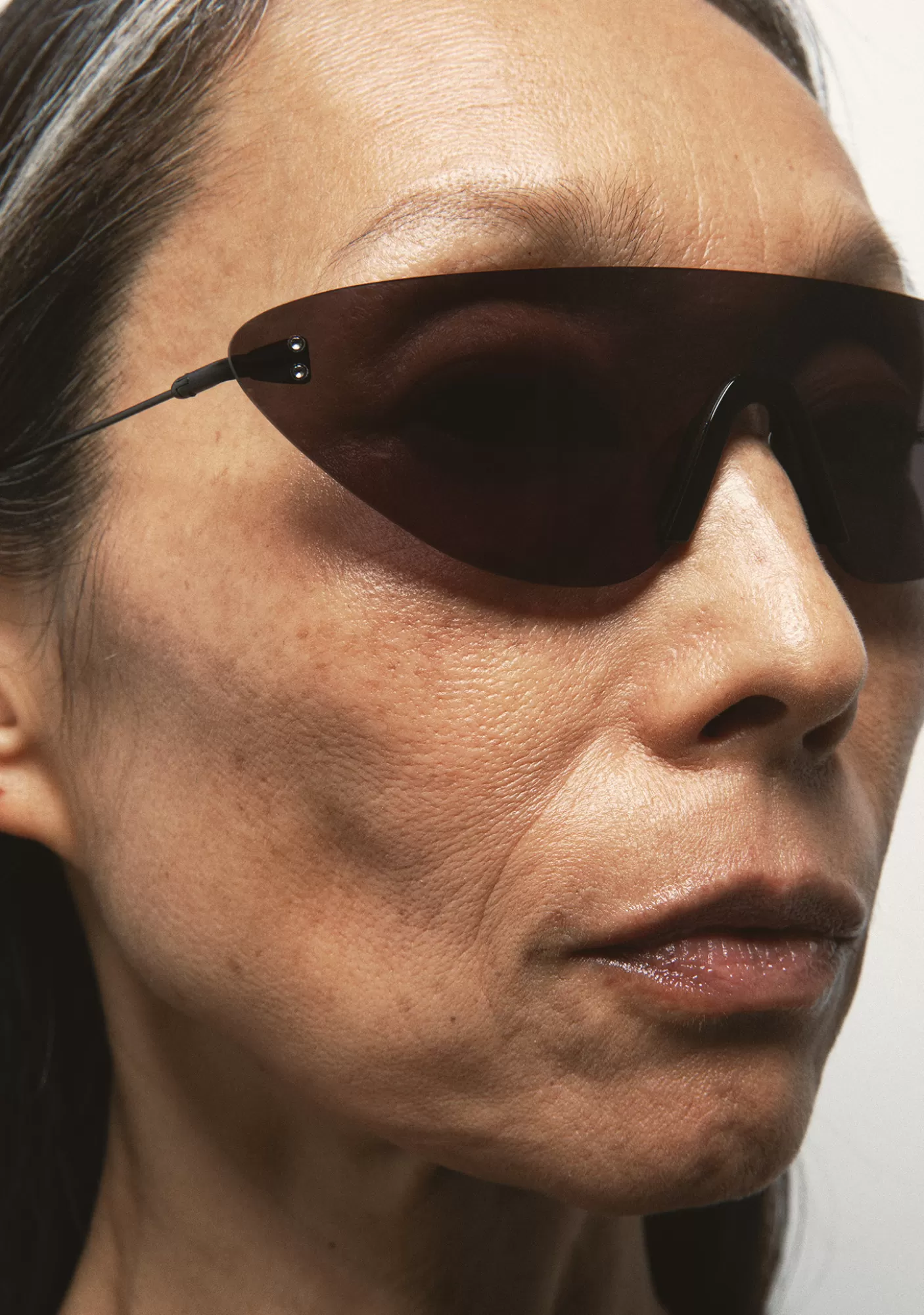 Mascara De Sol. Nasera De Acetato. Varillas De Hilo De Titanio Con Terminal De Cerilla De Acetato Con Linea Blanca Laminada. Pantalla Base 6 Gris Clara Con 100% Proteccion Uv Y Tratamiento Anti-Reflejante. Plaquetasde Acetato Incorporadas. Hecha A Mano.